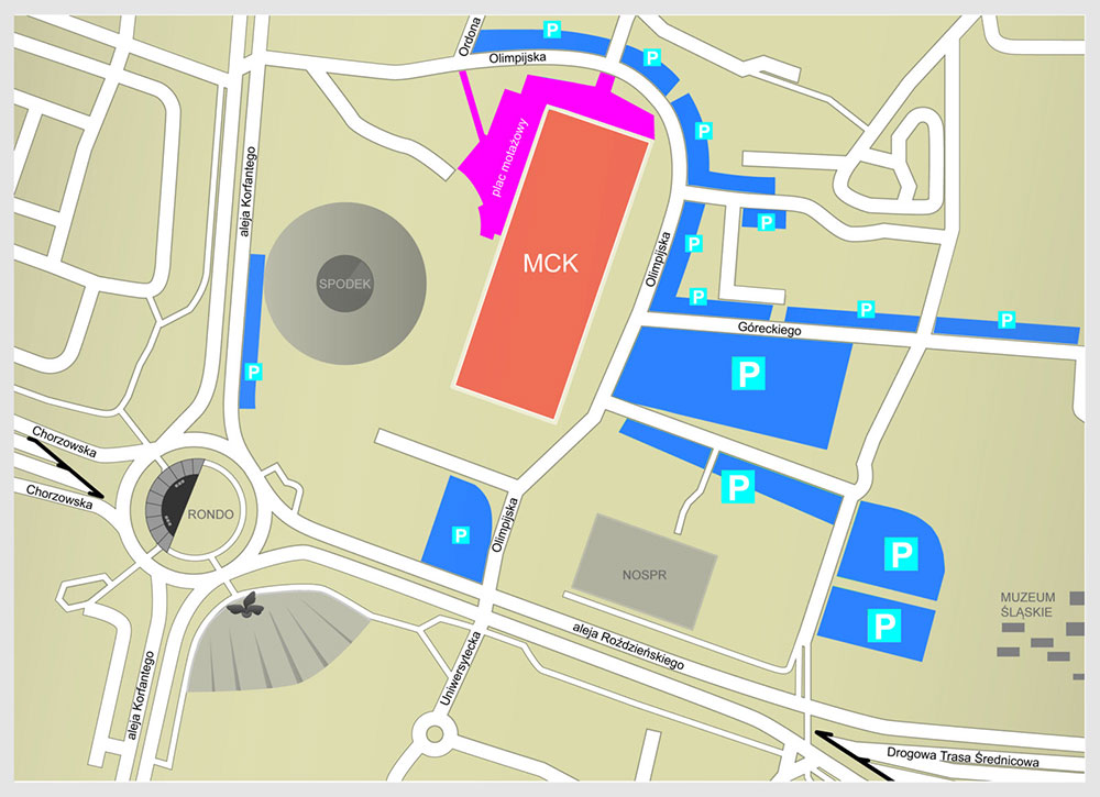 Urząd Miasta Katowice przygotował specjalną mapkę, która prezentuje zagospodarowanie terenu na czas trwania kongresu.