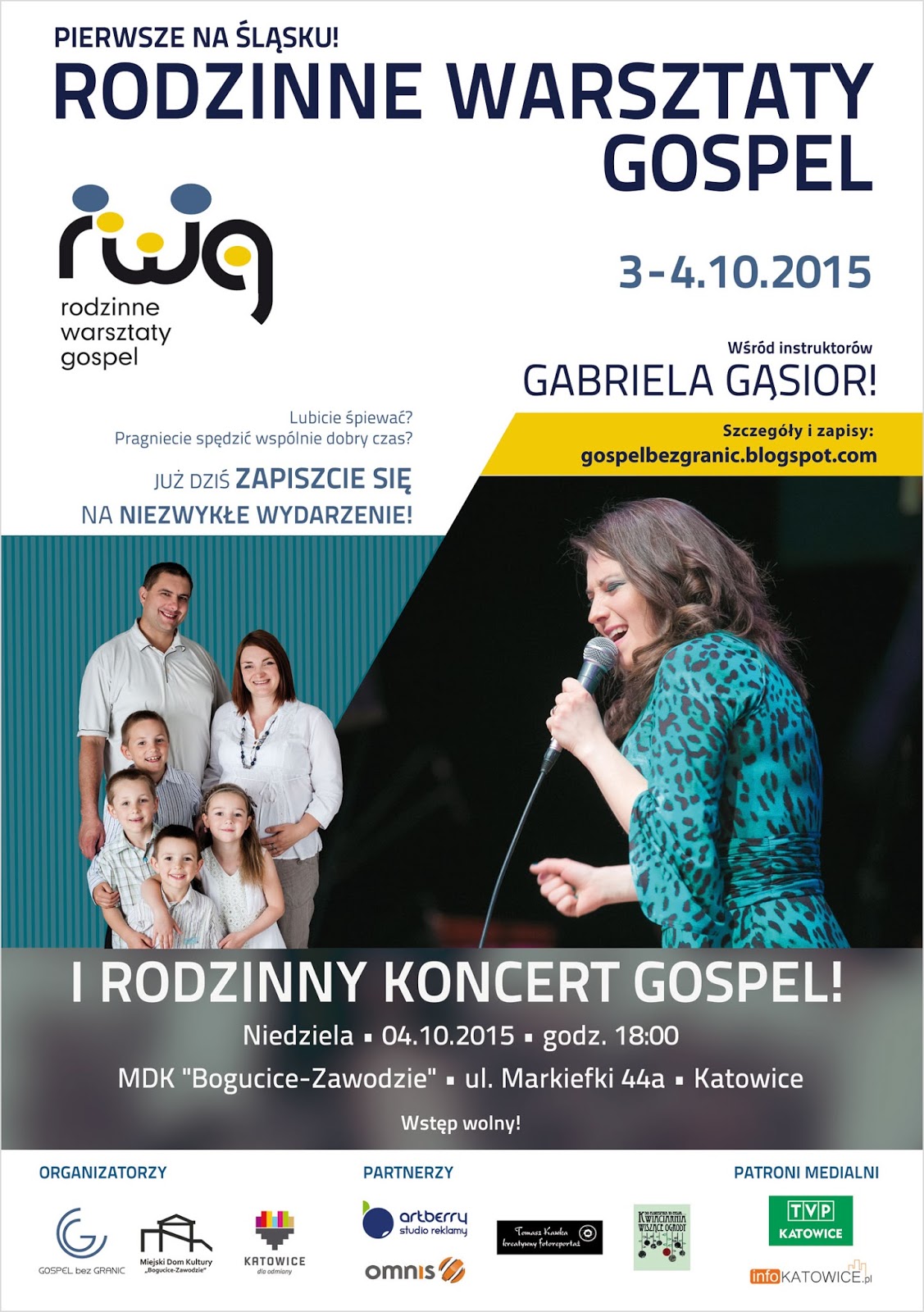 Wydarzenie zwieńczy rodzinny koncert muzyki gospel, na który już dzisiaj wszystkich serdecznie zapraszamy do Miejskiego Domu Kultury Bogucice-Zawodzie przy ul. Markiefki 44a o godzinie 18:00. Wstęp na koncert jest bezpłatny.