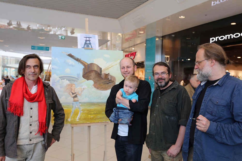 To niezwykłe przedsięwzięcie odbywało się w Centrum Handlowym 3 Stawy w Katowicach podczas wystawy 100 dzieł magicznego realizmu, oprócz artystów malujących były to prace Zdzisława Beksińskiego, Rafała Olbińskiego i Tomasza Sętowskiego.