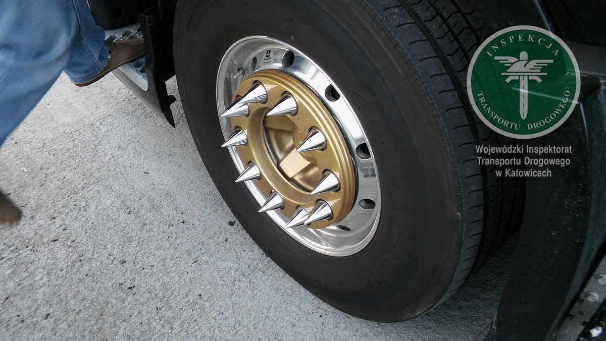 – Niestety nietypowe ozdoby kół, rodem z filmu „Mad Max”, jakie posiadał kontrolowany pojazd, zgodnie z obowiązującymi przepisami, nie mogą się znajdować na pojeździe dopuszczonym do ruchu po drogach publicznych. Dodatkowo w kabinie kontrolowanego pojazdu nie było praktycznie tapicerki i części deski rozdzielczej, bo jak wyznał kierowca, właśnie jest obijana skórą – informuje ITD.