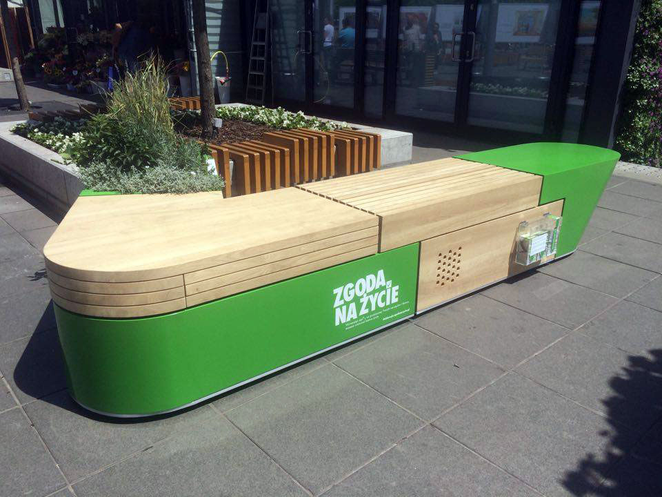 – Jest to ławka o nietypowym kształcie, wyróżniająca się nowoczesnym designem, która kryje w sobie historię osób po przeszczepie. Dzięki wbudowanemu systemowi audio, można wysłuchać konkretnych osób dziękujących za dar życia. Podziękowania uaktywniają się co kilka minut Do ławki dołączony jest również podajnik z papierowymi oświadczeniami woli – informują organizatorzy akcji.