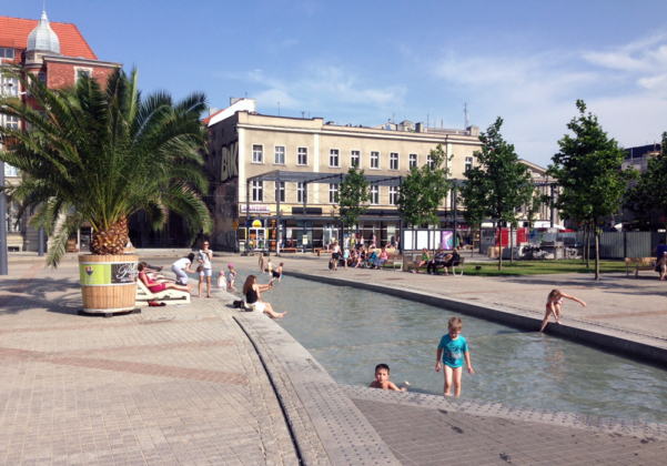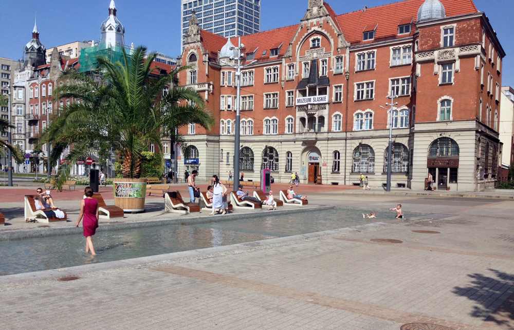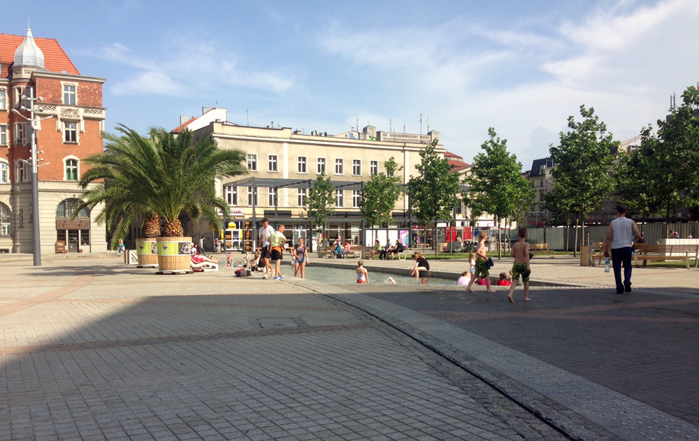 Katowickie Las Palmas, czyli palmy przywiezione z Gliwic i postawione nad sztuczną Rawą robią nie lada zamieszanie. Mieszkańcy chętnie wypoczywają nad atrapą rzeki i niestety w niej też pływają. W końcu woda kiedy ukrop leje się z nieba kusi.
