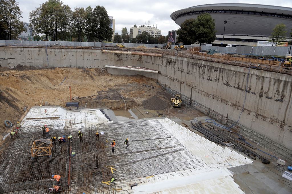 Na placu budowy obecne są także cztery koparki do wykonywania robót ziemnych oraz 15 samochodów wywożących urobek. Roboty ziemne prowadzone są w systemie dwuzmianowym. Na terenie inwestycji nadal pracuje także kotwiarka wykonująca tymczasowe kotwy gruntowe oraz dźwig kołowy do transportu stali zbrojeniowej.