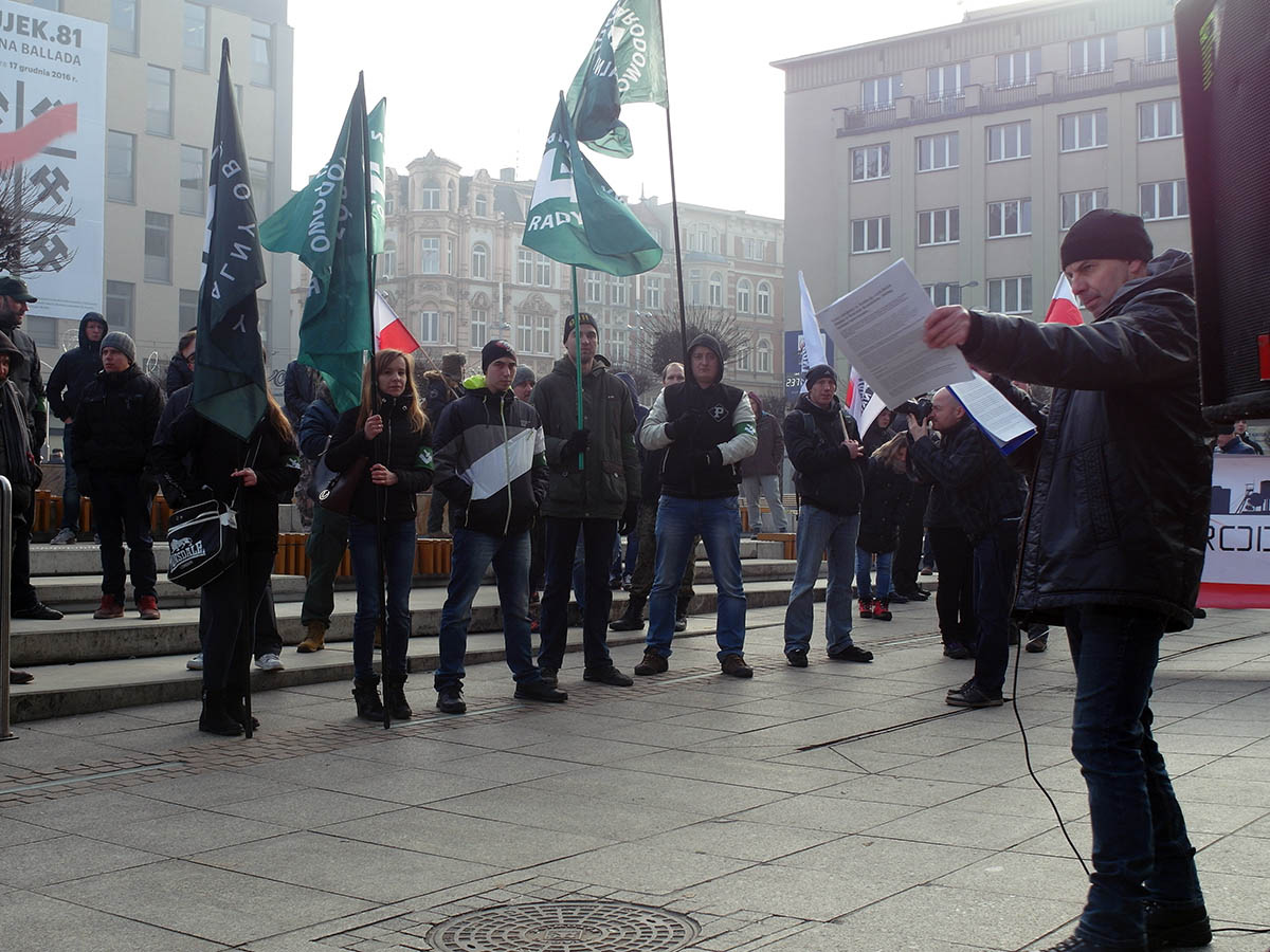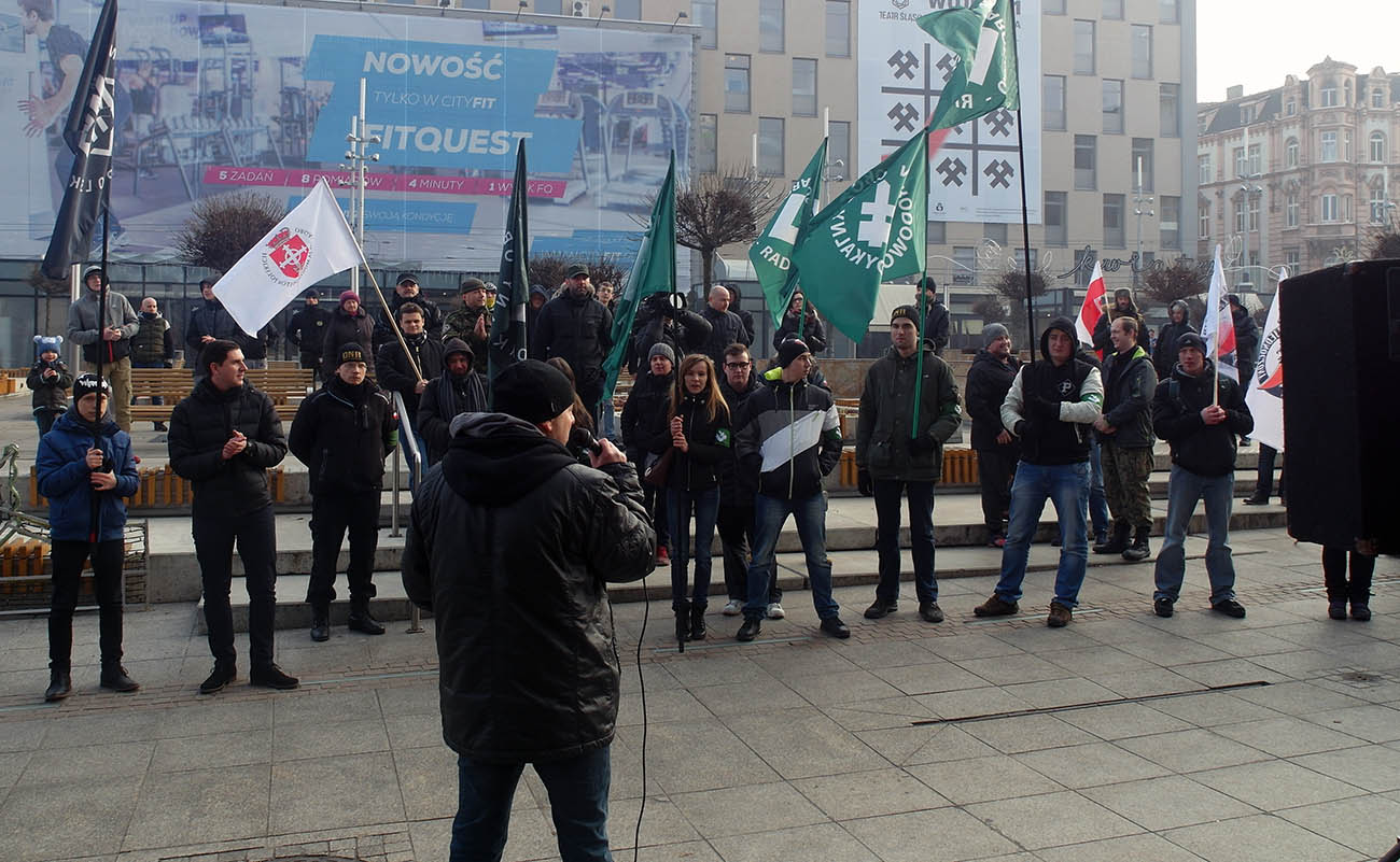 Cieszy fakt, że tego nacjonalistycznego śmiecia jest tak mało w Katowicach. Smuci konieczność zapewnienia im miejsca w demokratycznym społeczeństwie, która to konieczność spowodowana jest niewykonywaniem obowiązku ścigania szerzenia poglądow faszystowskich i nacjonalistycznych w RP. Trudno się patrzy gdy robi się w Polsce „Prawdziwych Polaków” z pospolitych bandziorów na dodatych mocnych jedynie w grupie i przy słabszych.