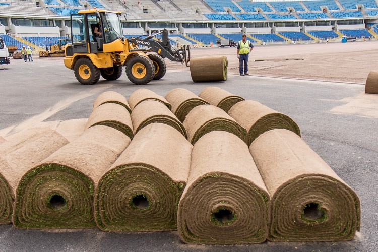 Na Stadionie Śląskim rozpoczęło się układanie murawy, cały proces potrwa do końca tygodnia. Następnie montowana będzie bieżnia lekkoatletyczna. Murawa przyjechała na Stadion z Węgier, gdzie została wybrana na plantacji pod Budapesztem. W sumie dostarczyło ją dwanaście ciężarówek, a w każdej mieści się siedemset metrów kwadratowych murawy o wadze dwudziestu czterech ton.