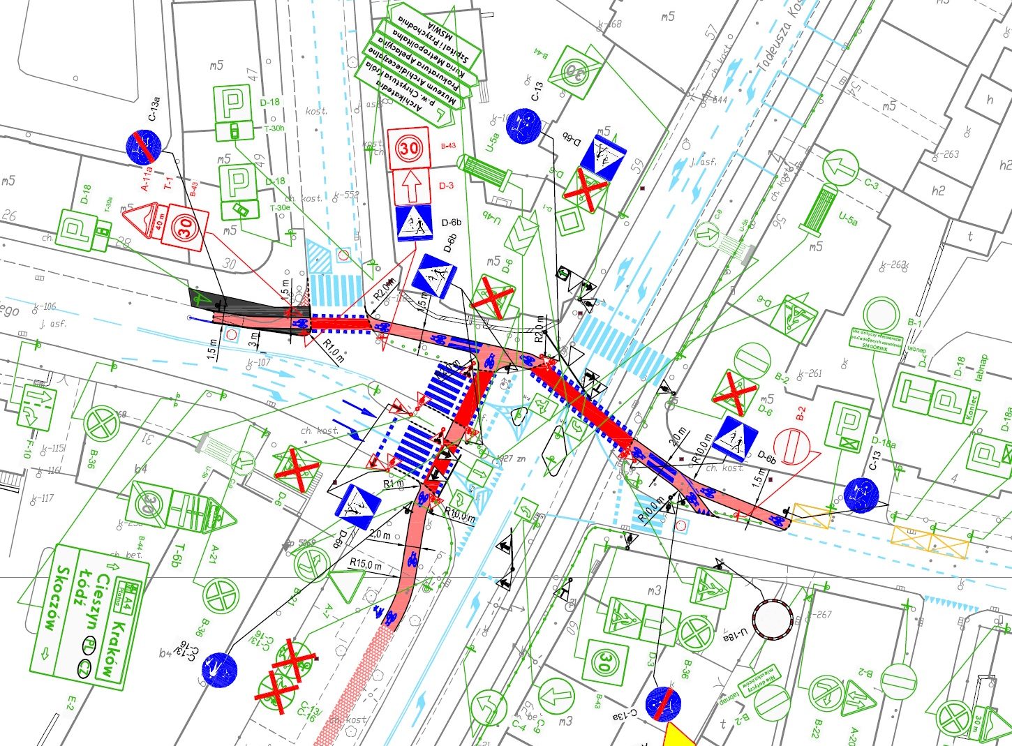 Przetarg na przebudowę sygnalizacji świetlnej na tym skrzyżowaniu ogłoszono 18 sierpnia. Chodzi o dostosowanie sygnalizacji do wprowadzanego przejazdu dla rowerów przez to skrzyżowanie. Drogowcy planują, by na skrzyżowaniu wyznaczyć przejazdy dla rowerzystów przez północny wlot ul. T. Kościuszki i wlot ul. J. Poniatowskiego.