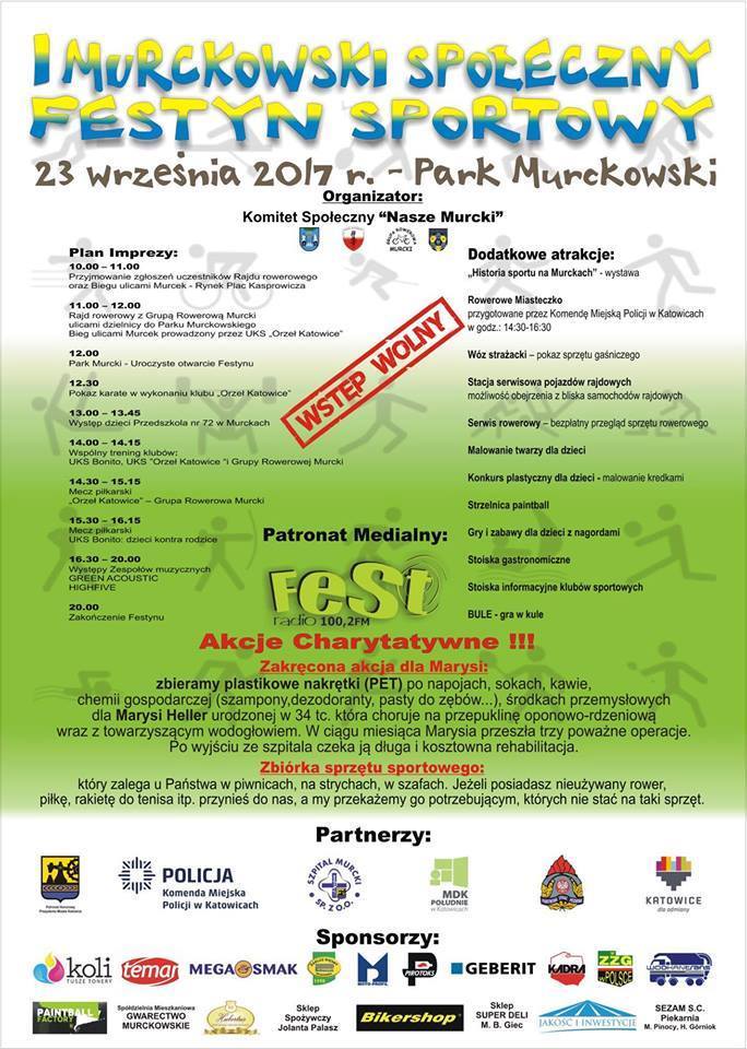 Od godziny 10.00 będą przyjmowana zgłoszenia uczestników do rajdu rowerowego i biegu ulicami Murcek. Te wystartują o godzinie 11.00.