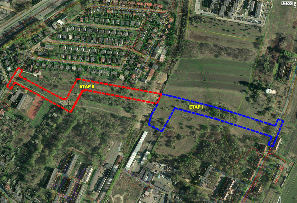 Inwestycję podzielono na dwa etapy. W ramach etapy pierwszego władze przewidują wykonanie odcinka drogi od ul. Janusza Korczaka, zakończonej ślepo przed terenem po byłej linii kolejowej (do granicy terenu inwestycji mieszkaniowej). Z kolei drugi etap będzie obejmował kontynuację drogi, aż do ul. Deszczowej (na północ od zabudowań dawnego Gimnazjum nr 11).