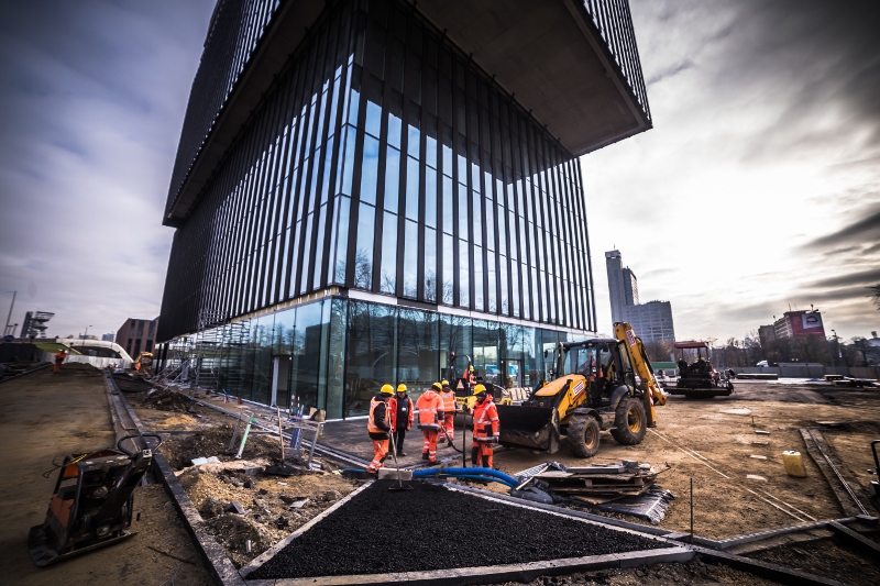 W październiku na terenie inwestycji wzmożono prace związane z powstaniem układu drogowego. Obecnie są one realizowane przy wjeździe głównym na budowę, od ul. Olimpijskiej. W najbliższych dniach generalny wykonawca rozpocznie układanie asfaltu.
