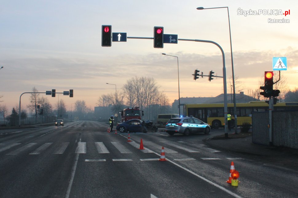 – 20-latek kierujący audi, jadąc ulicą Kościuszki w kierunku centrum, na skrzyżowaniu z ulicą Armii Krajowej przejechał na czerwonym świetle i doprowadził do zderzenia z autobusem – mówi Aneta Orman z katowickiej policji. – Kierowca audi z obrażeniami ciała został przewieziony do szpitala. Pod opiekę lekarzy trafił również kierowca autobusu oraz pasażerka – dodaje.