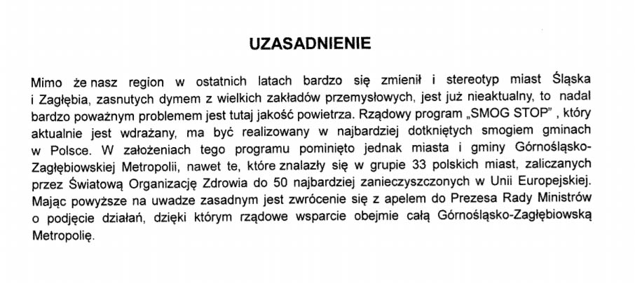 – W założeniach programu pominięto jednak miasta i gminy Górnośląsko-Zagłębiowskiej Metropolii, nawet te, które znalazły się w grupie 33 polskich miast, zaliczanych przez Światową Organizację Zdrowia do 50 najbardziej zanieczyszczonych w Unii Europejskiej – czytamy w apelu.