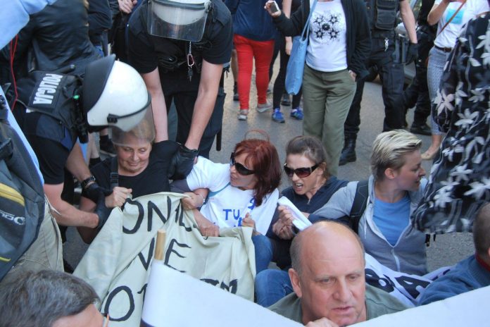 Ze swojego udziału w blokowaniu marszu zadowoleni są kontrmanifestujący. Wśród nich działacze Partii Zieloni.