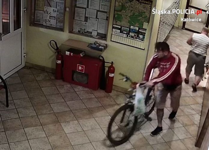 – W godzinach popołudniowych do wieżowca przy ul. Sokolskiej 33 wszedł widoczny na nagraniu mężczyzna, który z klatki schodowej na 21 piętrze ukradł rower. Następnie sprawca zjechał widną i wyszedł z budynku wraz ze skradzionym rowerem – informuje Paweł Warchoł z katowickiej policji. – Łupem złodzieja padł jednoślad marki Giant w rozmiarze 26″, z osprzętem firmy Shimano. Rower wyposażony był w hamulce szczękowe, amortyzator oraz koszyk na bidon – dodaje.