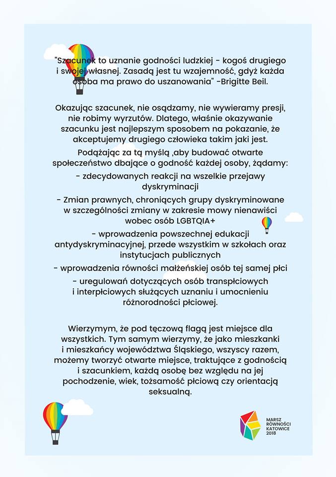 Więcej na temat marszu na stronie: http://marszrownosci.katowice.pl/