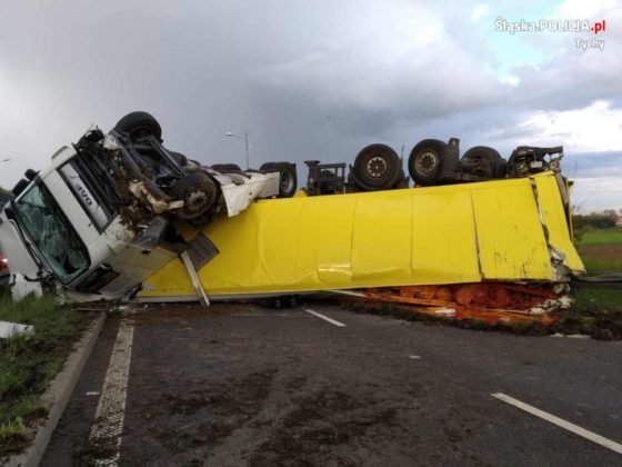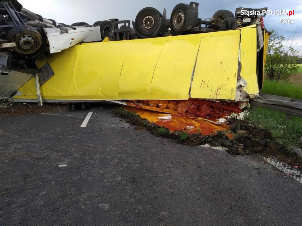 W piątek przed godziną 18.00 dyżurny tyskiej komendy otrzymał informacje o zdarzeniu drogowym na trasie DK1 w Tychach, gdzie samochód ciężarowy blokował jezdnię w kierunku Katowic.