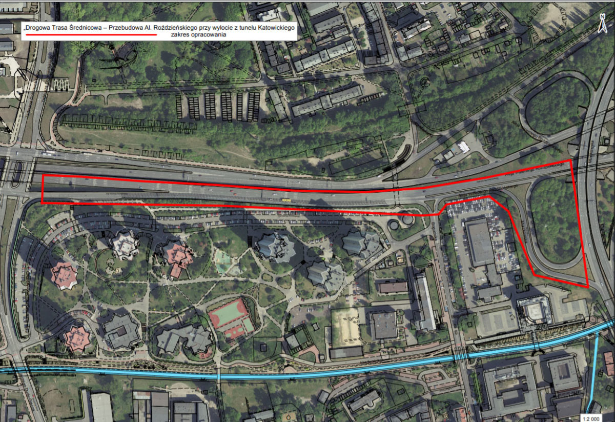 Inwestycja pn.: „Drogowa Trasa Średnicowa – Przebudowa Al. Roździeńskiego przy wylocie z tunelu Katowickiego” na granicy Śródmieścia i Bogucic, ma doczekać się konkretnego projektu w 2020 roku. W tym roku – jak poinformował katowicki magistrat – zostanie zlecone opracowanie dokumentacji projektowej. Jej zakres to: