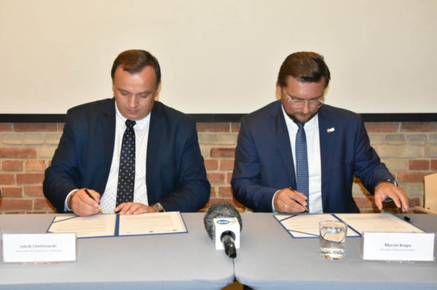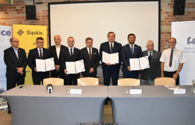 List intencyjny w sprawie rozbudowy podpisali marszałek Jakub Chełstowski, prezydent Katowic Marcin Krupa i dyrektor Śląskiego Centrum Wolności i Solidarności Robert Ciupa.