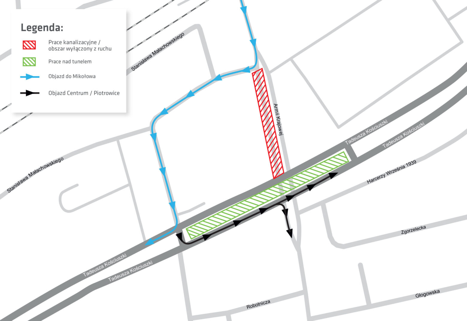 – W związku ze zmianą koncepcji projektowanej kanalizacji deszczowej w rejonie przebudowy skrzyżowania ulic Kościuszki (DK81) i Armii Krajowej – planowane wprowadzenie zmian w organizacji ruchu w dniu jutrzejszym, które miały polegać za zawężeniu ul. Armii Krajowej na odcinku od ul. Małachowskiego do ul. Kościuszki zostaje odwołane. O nowym terminie prac kanalizacyjnych poinformujemy Państwa zaraz po jego ustaleniu przez wykonawcę – poinformowała Ewa Lipka, rzecznik katowickiego magistratu.