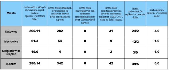 Obecnie w Katowicach mamy 200 potwierdzonych przypadków choroby. 282 osoby objęte są kwarantanną, a 4 osoby zmarły. Katowice liczą około 280 tys. mieszkańców, co daje nam skalę chorych 0,07%.
