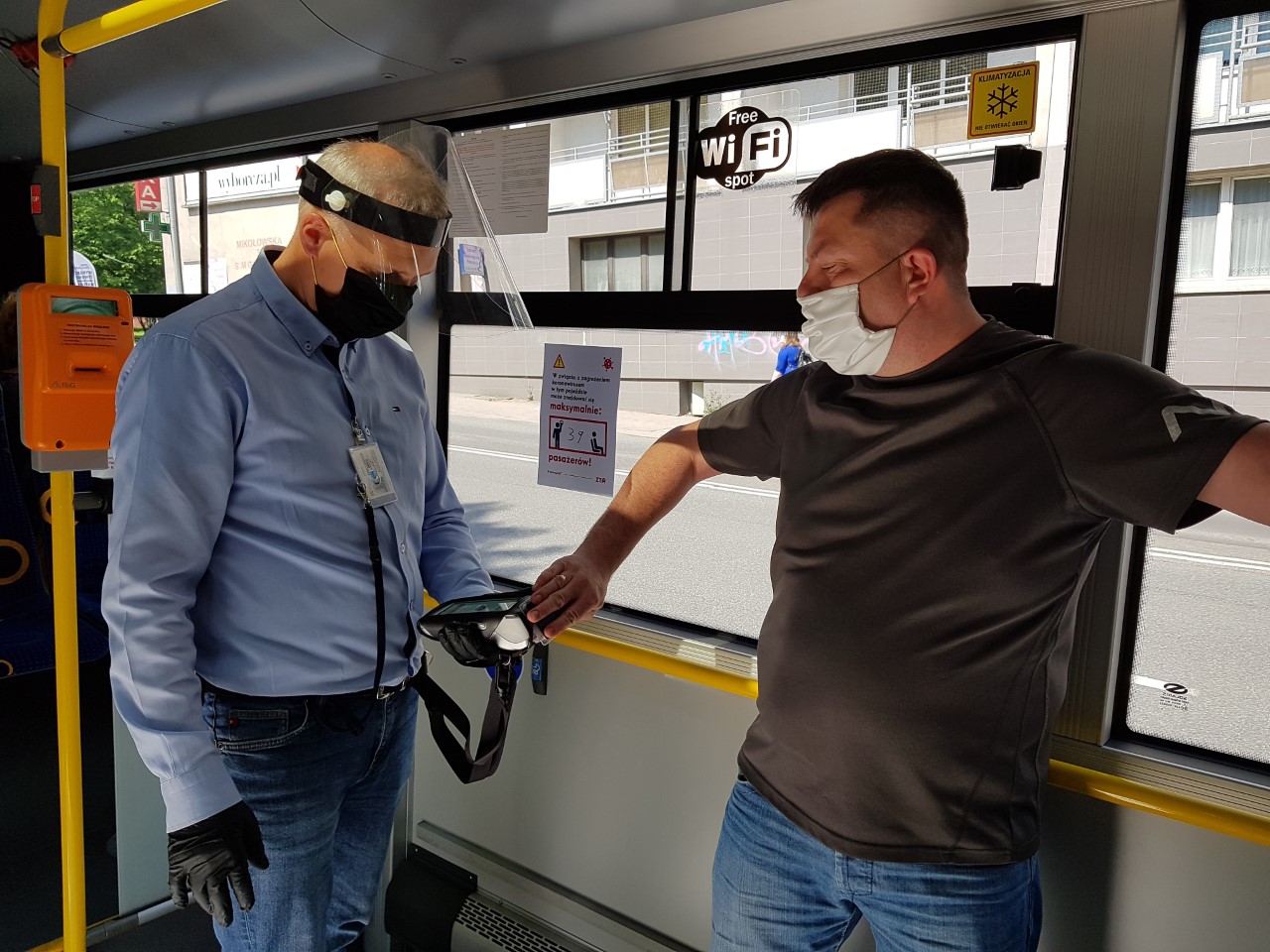 „ Po pierwsze kontrolerzy biletów skupiają się już na swoim podstawowym obowiązku, a w mniejszym stopniu prowadzą liczenia podróżnych” – przestrzega gapowiczów zastępca naczelnika Wydziału Kontroli Biletów Tomasz Musioł. – „Po drugie niektórzy z nas dysponują już nowymi kontrolerkami. Urządzenia te umożliwiają bezdotykową płatność kartą bankową za jazdę bez biletu, co w dobie koronawirusa stanowi istotne, bo bezpieczne rozwiązanie. Kontrolerki znacząco też przyspieszają naszą pracę” – dodaje.