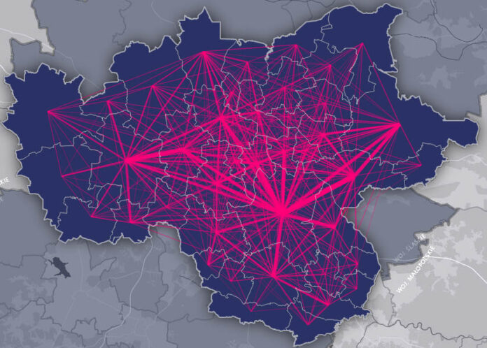 „Z mapy możemy się dowiedzieć m.in., że do Katowic w 2016 roku przyjeżdżało łącznie ponad 100 tysięcy osób, z czego 60 proc., stanowili mieszkańcy GZM. Jako miasto wojewódzkie, Katowice przyciągają również mieszkańców spoza GZM – zarówno z województwa śląskiego (28 proc. z wyłączeniem gmin GZM), ale również z województwa małopolskiego (ponad 5 proc. przyjeżdżających), czy innych ośrodków miejskich takich jak Warszawa, Wrocław, czy Rzeszów. W przypadku Katowic nie odnotowano przyjazdów jedynie z województwa warmińsko-mazurskiego” – opisuje Goleniak.