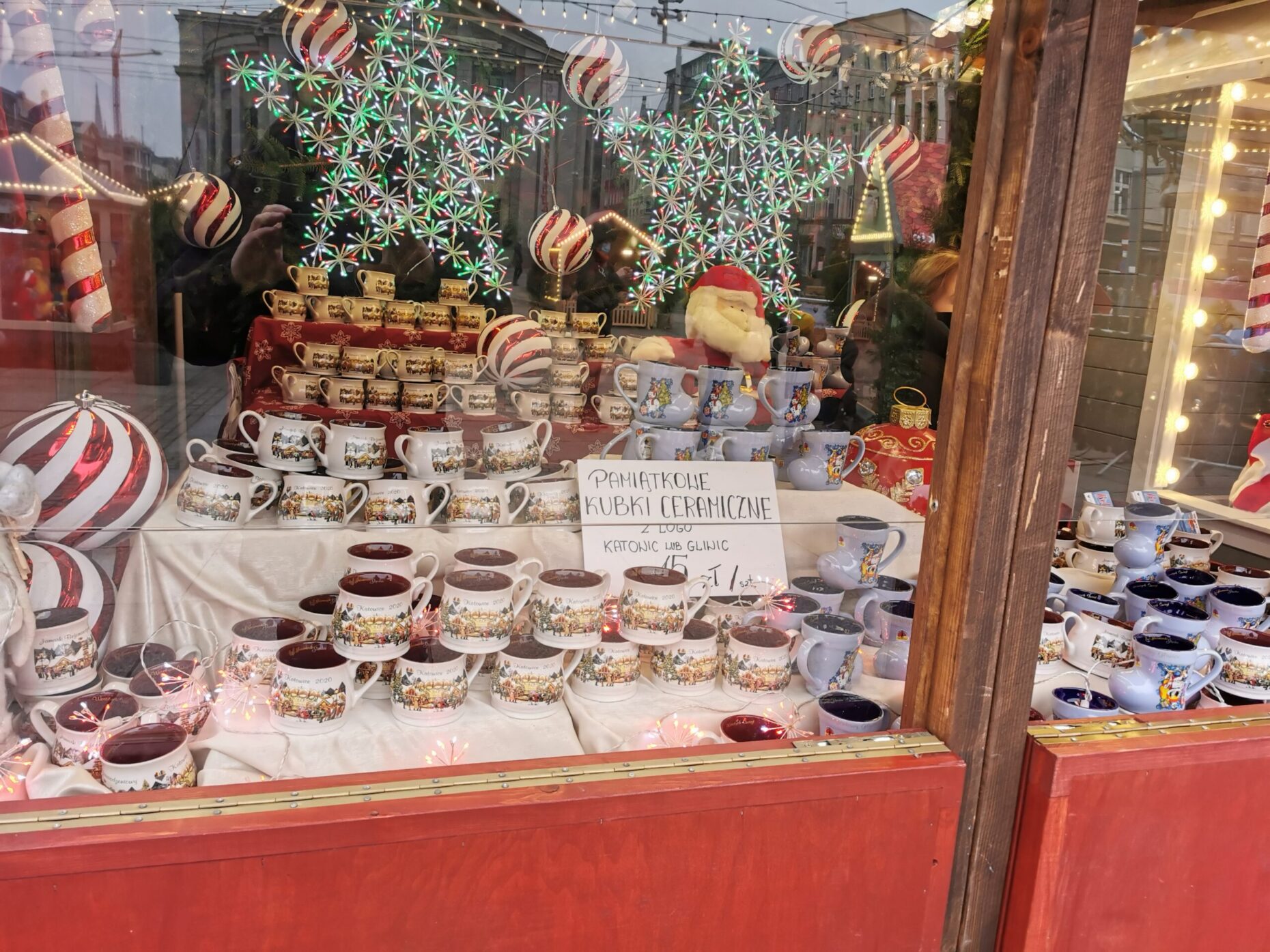Na Rynku w jednym z kramików można kupić też kubki z logo miasta Katowice i miasta Gliwice.