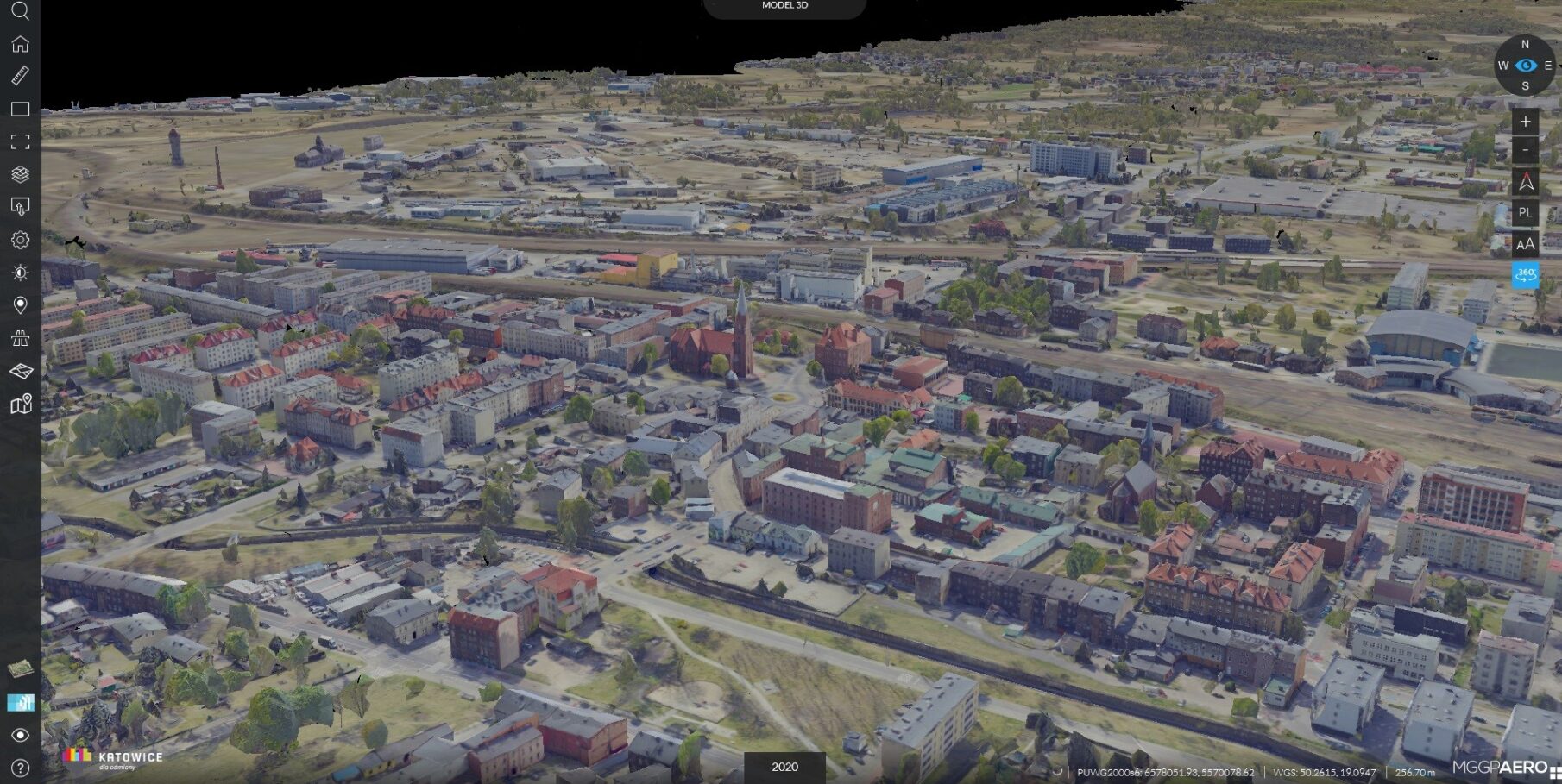 Powstanie serwisu to nie była prosta sprawa – wylicza magistrat. Budowano go w oparciu o zdjęcia lotnicze, zdjęcia ukośne, fotoplany, skaning laserowy, opracowanie prawdziwej ortofotomapy „true ortho” oraz aktualizację numerycznego modelu 3D budynków i budowli. Całość została przetworzona przez specjalistyczny sprzęt i umieszczona w chmurze Oracle Cloud. Serwis jest zintegrowany z Miejskim Systemem Zarządzania – Katowicką Infrastrukturą Informacji Przestrzennej. To pierwsze tego typu rozwiązanie w Polsce i Europie w całości zaimplementowane w usłudze chmurowej Oracle Cloud.