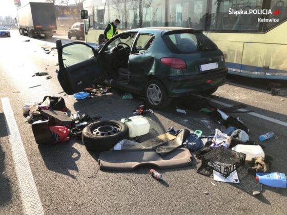 Co wynika ze wstępnych ustaleń katowickiej policji? 29-letni kierujący Peugeotem jechał zbyt szybko al. Roździeńskiego w stronę centrum Katowic. Doprowadził do zderzenia ze Skodą i Renault. Dalej uderzył w autobus i ciężarówkę oraz osobowe Volvo.
