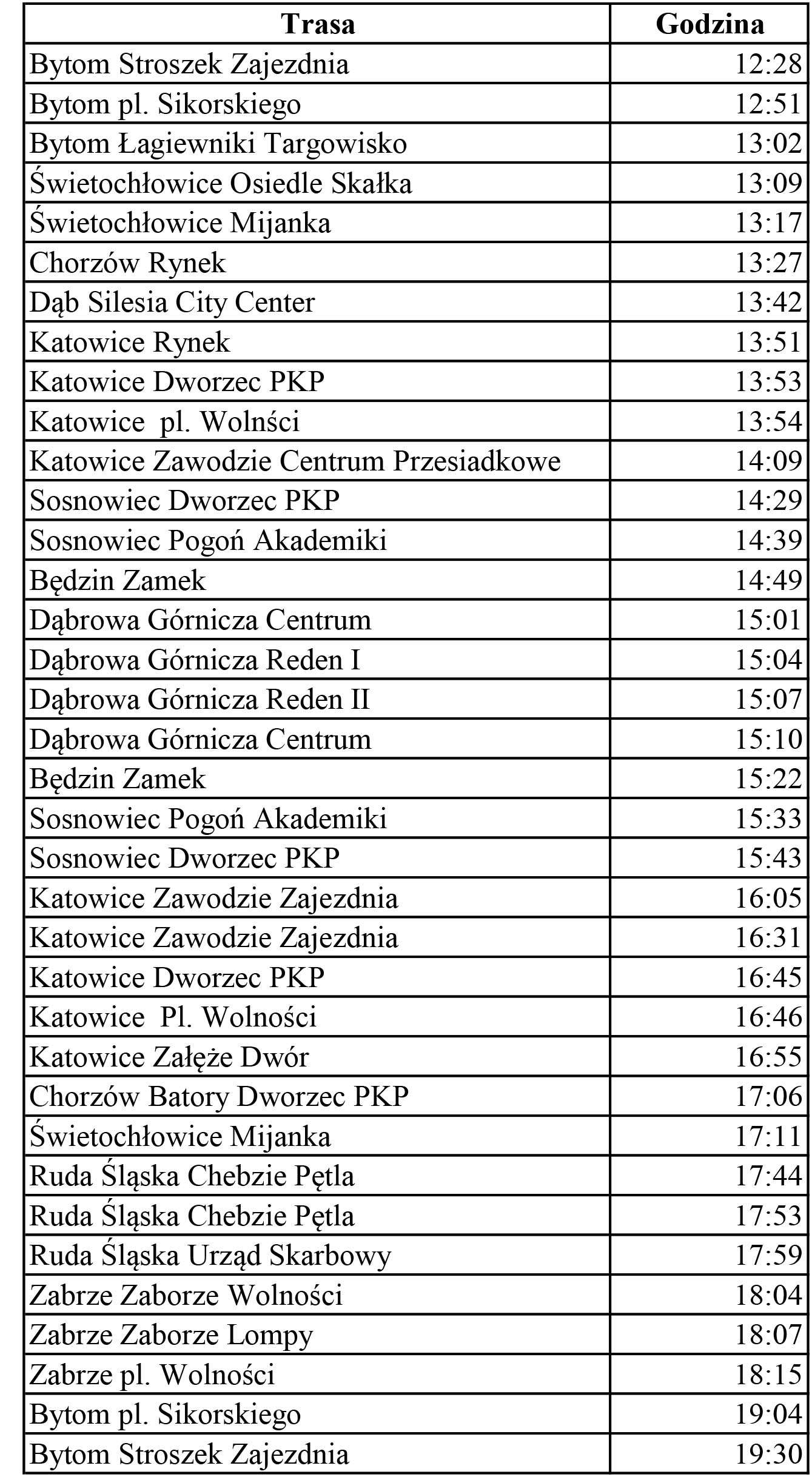 Poniżej orientacyjny rozkład jazdy tramwaju.
