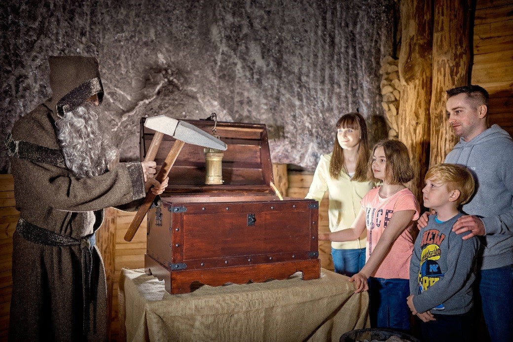 Dla rodzin z dziećmi kopalnia przygotowała wariant trasy turystycznej podczas którego cała uwaga skupi się na najmłodszych uczestnikach wycieczki. Dzieci przeniosą się w świat podziemnej krainy Skarbnika. Poznają legendę o tej postaci, będą poszukiwać skarbu, zwiedzając kopalnię, by wreszcie spotkać tajemniczą postać bocheńskiego Skarbnika. Bilety do nabycia z wyprzedzeniem ( najpóźniej 1 dzień przed przyjazdem) on – line , oraz bezpośrednio przy okienku kasowym. Ten wariant zwiedzania dostępny jest dla osób indywidualnych. Warunkiem uczestnictwa jest zakup biletu dla osoby dorosłej i dowolnej ilości dzieci.
