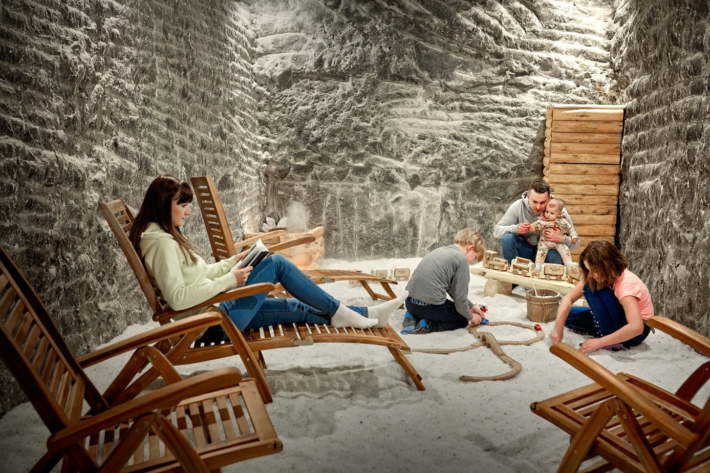 Podczas pobytu pod ziemią oddychamy powietrzem, które zostało w naturalny sposób oczyszczone w solnych wyrobiskach i dodatkowo wzbogacone przez mikroelementy korzystnie wpływające na nasze zdrowie.