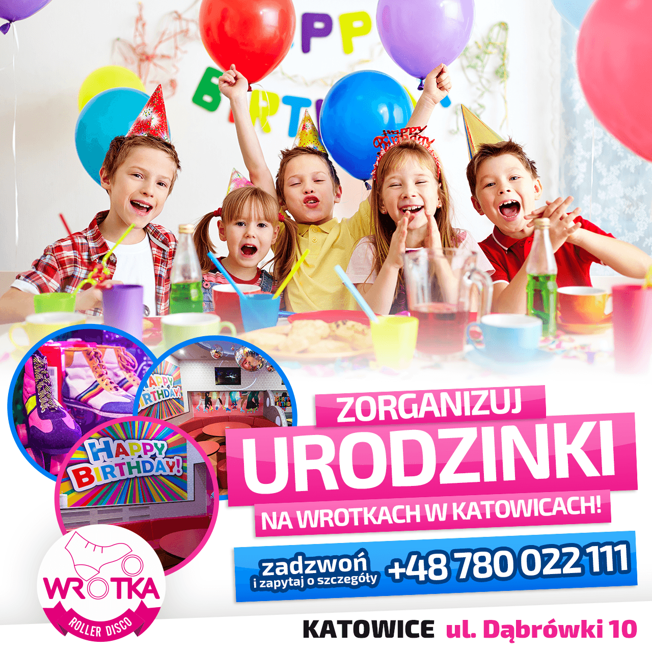 Wrotka Katowice to połączenie dyskoteki z lat 80. z najnowszą technologią: nowoczesne oświetlenie, fenomenalne nagłośnienie, przyjazna atmosfera. Lokal wyremontowany został specjalnie dla powstania wrotkowiska, więc bezpieczeństwo jest na najwyższym poziomie. Wszystkie elementy wyposażenia (wrotki, ochraniacze oraz kaski) dostępne są do wypożyczenia na miejscu w pełnej gamie rozmiarów w naszej wypożyczalni.