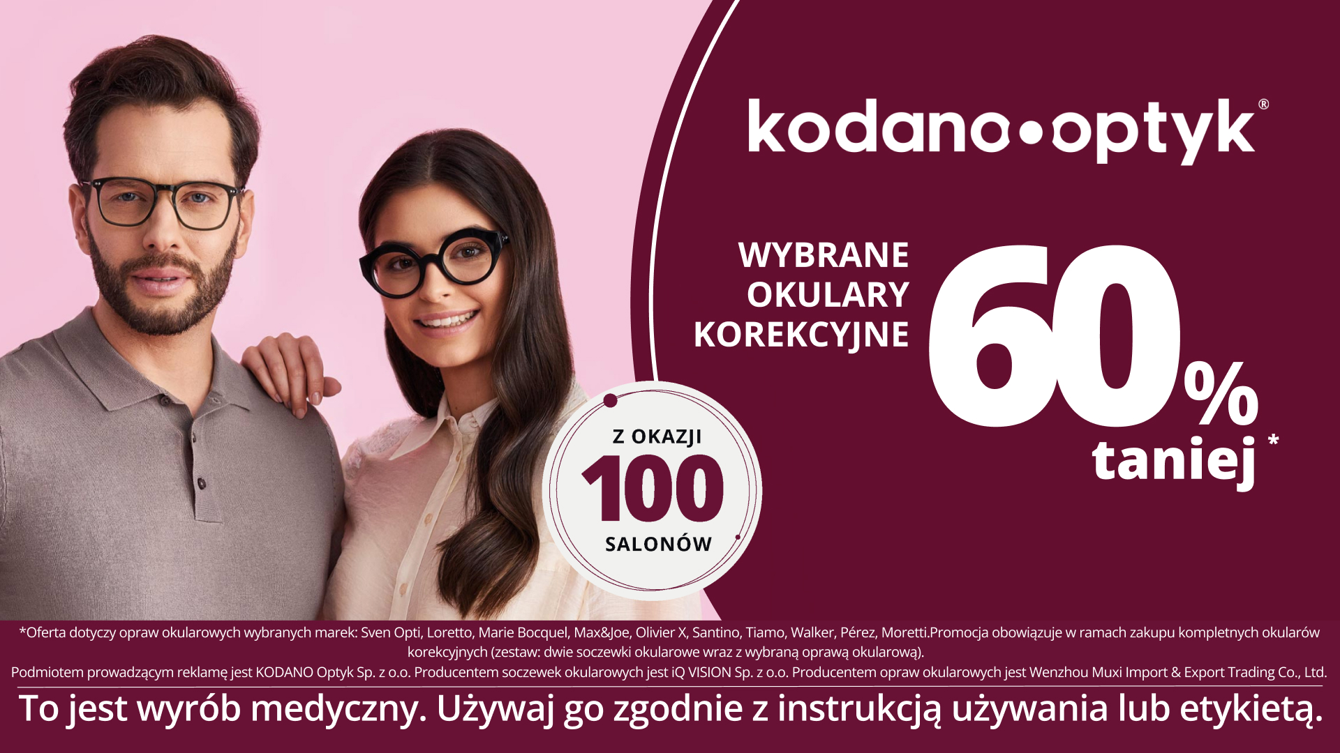 Mamy już ponad 100 salonów KODANO Optyk w całej Polsce! Z tej okazji czeka na Ciebie świetna oferta! Tylko teraz w salonach KODANO Optyk możesz kupić wybrane, kompletne okulary korekcyjne aż 60% taniej!