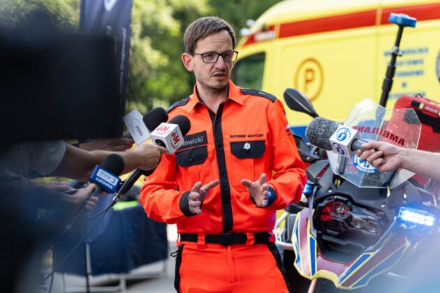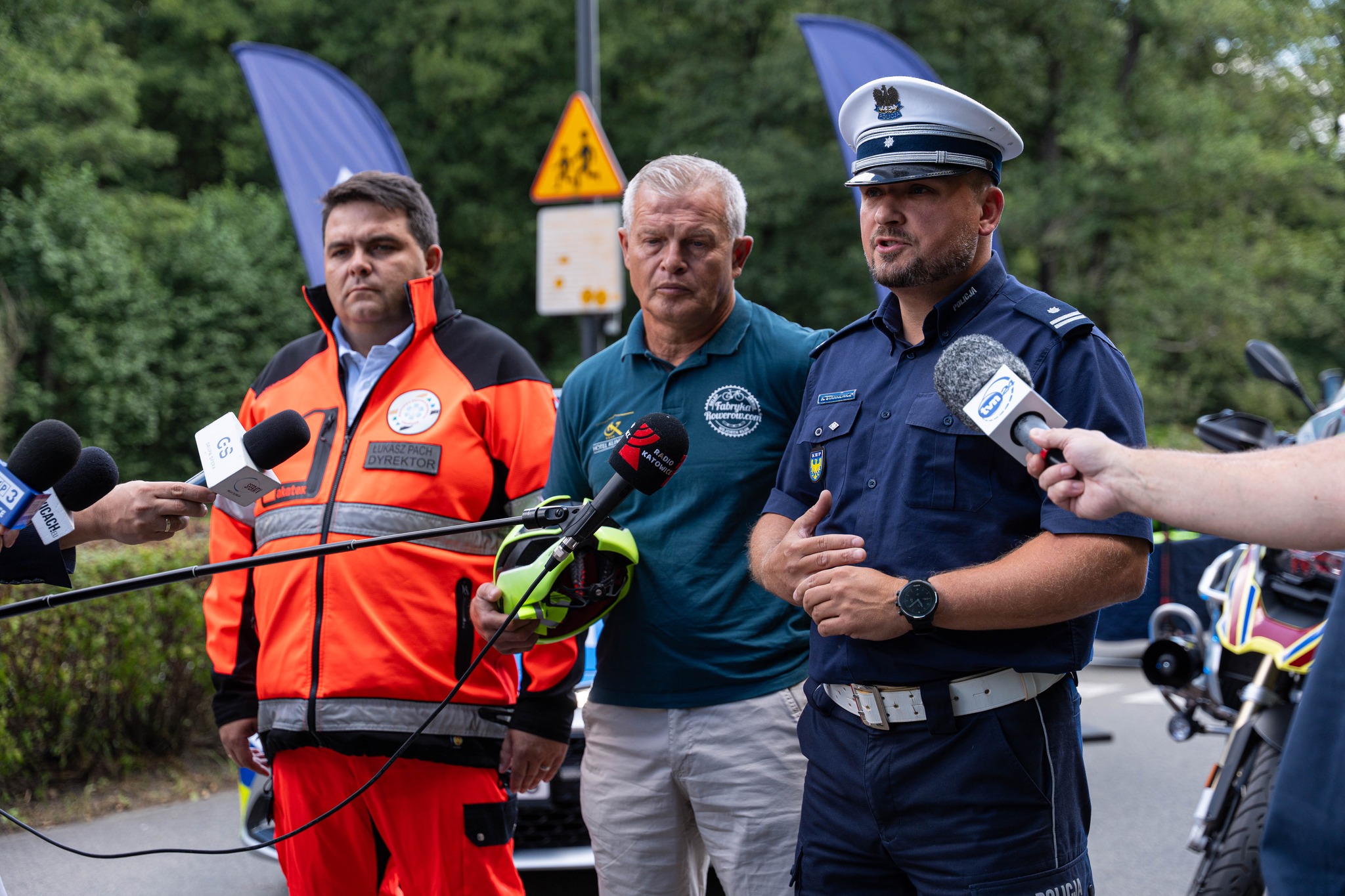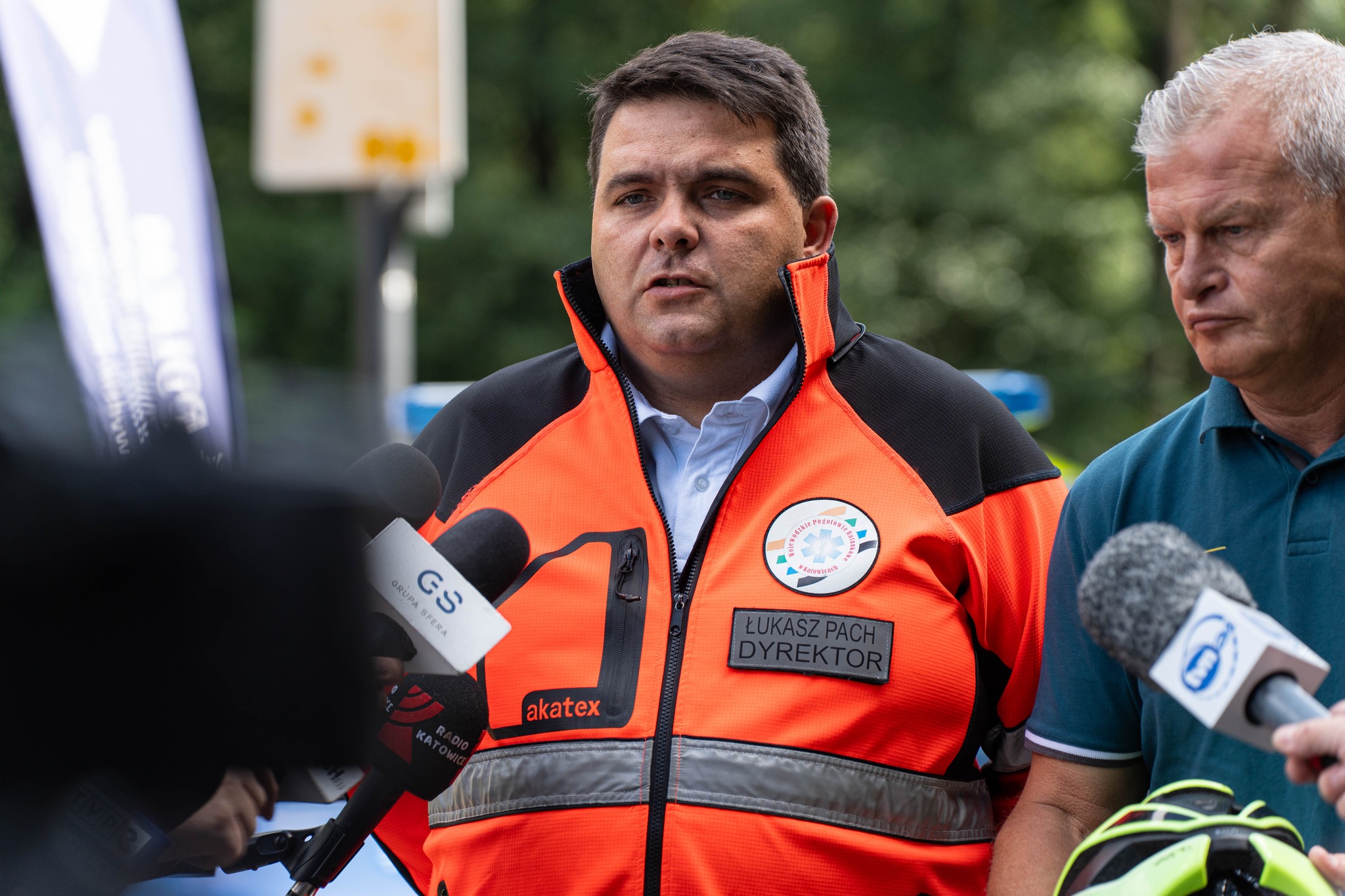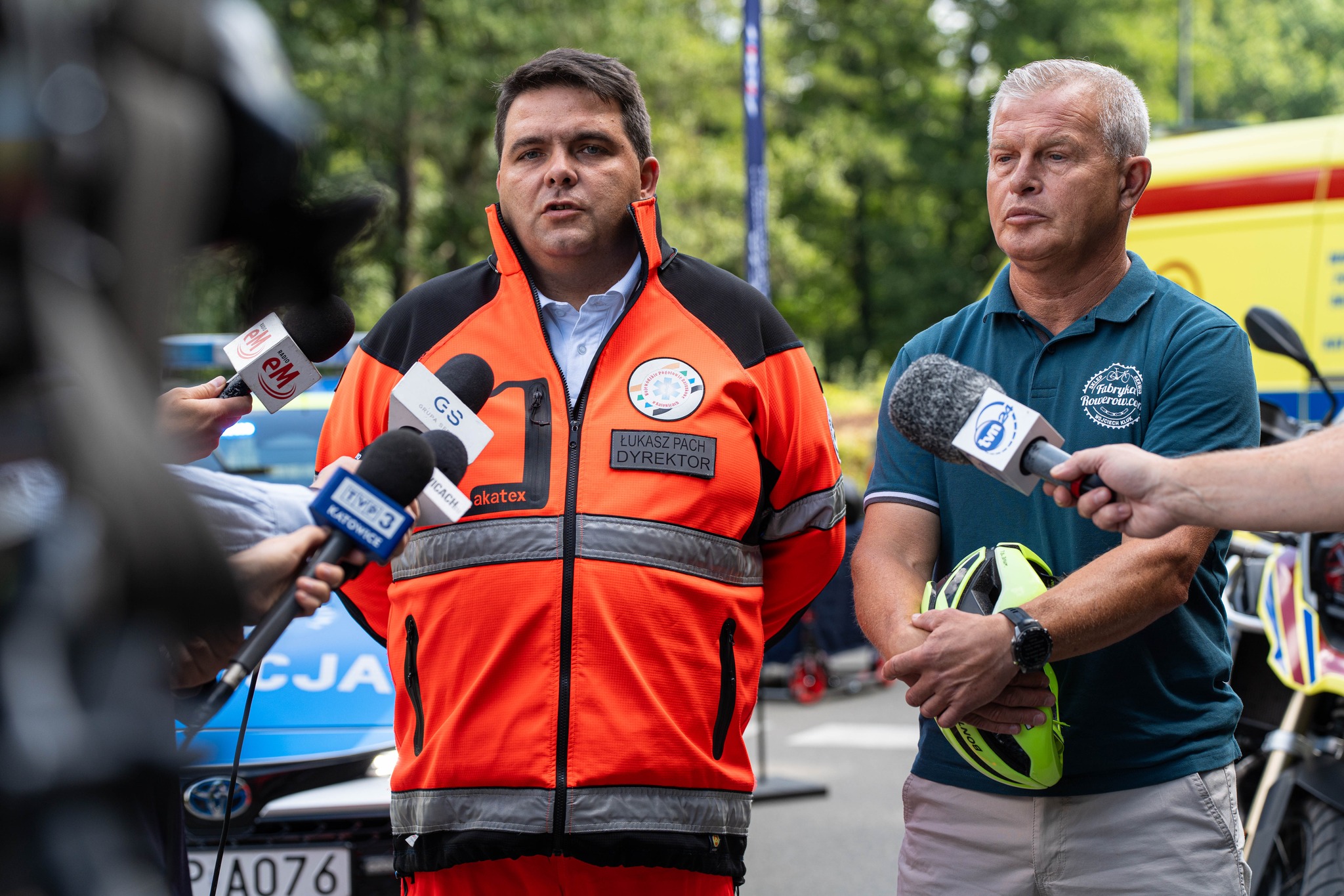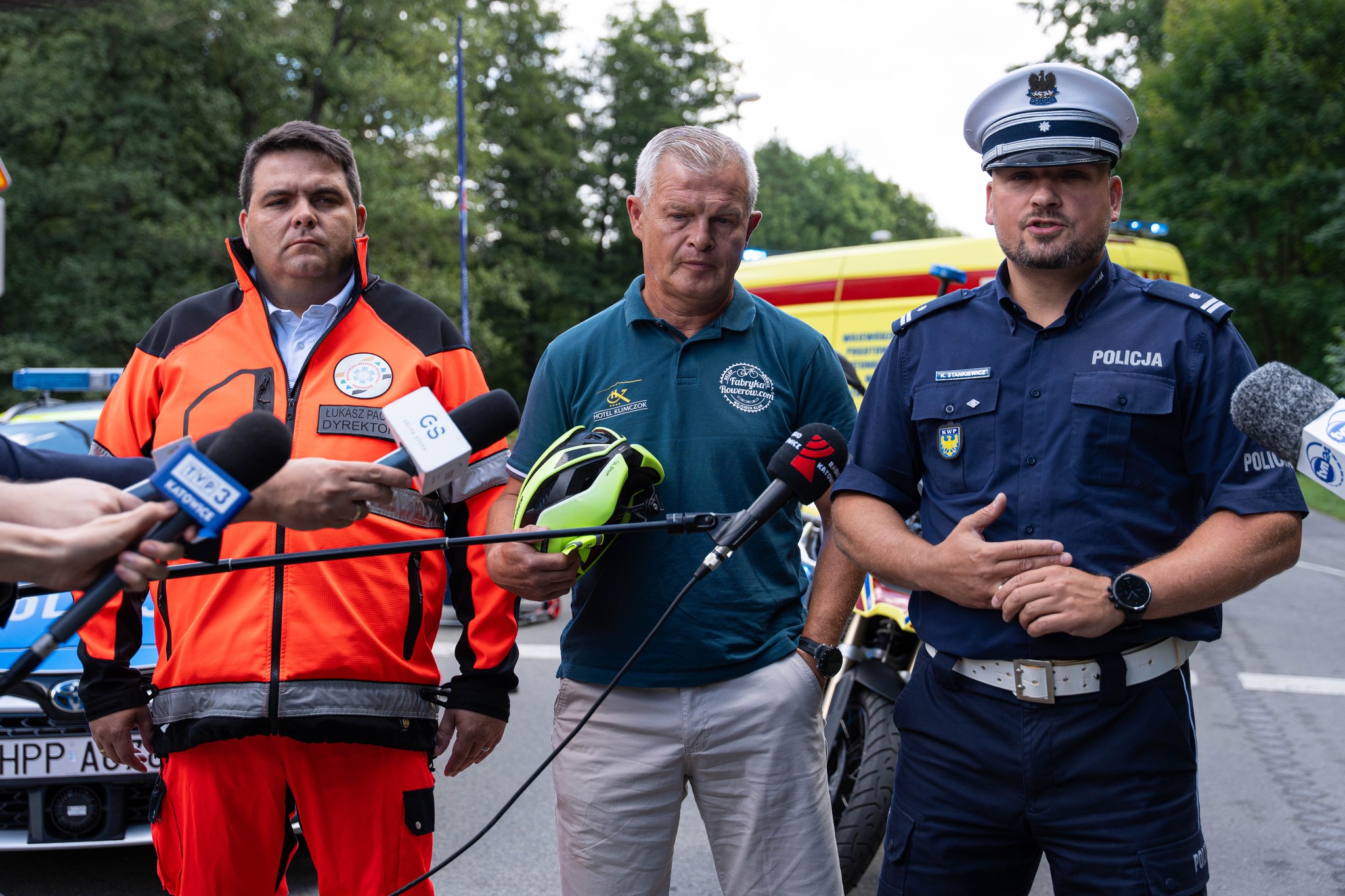 Dzisiaj w Katowicach odbyła się konferencja prasowa poświęcona bezpieczeństwu rowerzystów i użytkowników hulajnóg elektrycznych. W wydarzeniu wzięli udział przedstawiciele Wojewódzkiego Pogotowia Ratunkowego w Katowicach, Policji Śląskiej, ratownicy medyczni oraz gość specjalny – Ireneusz Bieleninik, dziennikarz i prezenter, który podzielił się swoją osobistą historią związaną z wypadkiem drogowym.